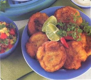 Cook potatoes, then peel and grate them. Let cool completely. Beat eggs well until they become foamy. Add salt, black pepper, baking powder, and potatoes and mix well.