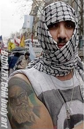 An Arab protester sporting the image of the late Ayatollah Khomeyni